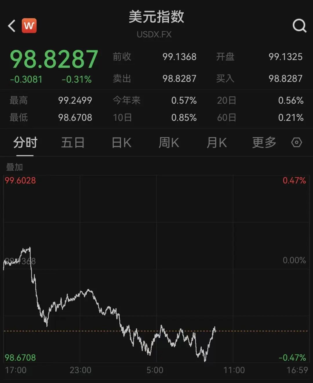 截至发稿,道琼斯指数跌超0.6%,下挫超300点,纳斯达克与标普500指数跌幅较小。此外,美元指数12日也持续走低,截至发稿跌幅超0.3%。