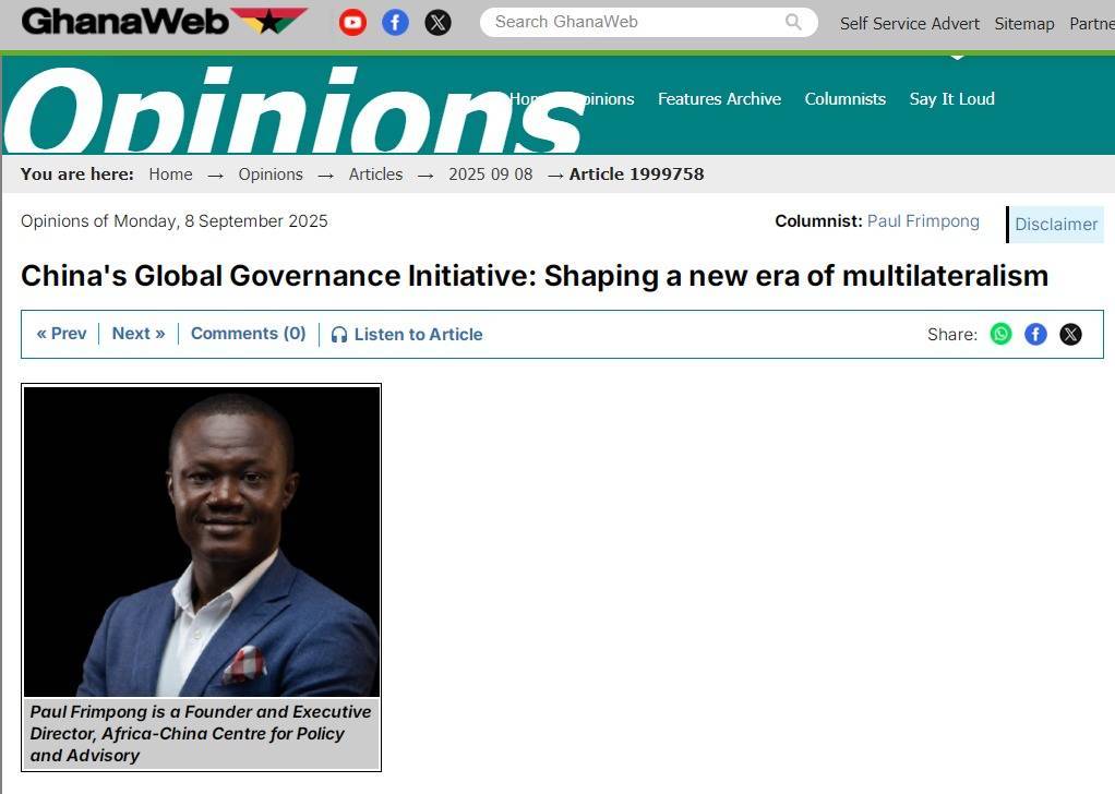 中国日报网9月12日电 加纳新闻网站“Ghana Web”9月8日刊发加纳非中政策咨询中心执行主任保罗·弗林蓬的署名文章《中国全球治理倡议:塑造多边主义新时代》股速查,对中国提出的全球治理倡议予以高度评价。